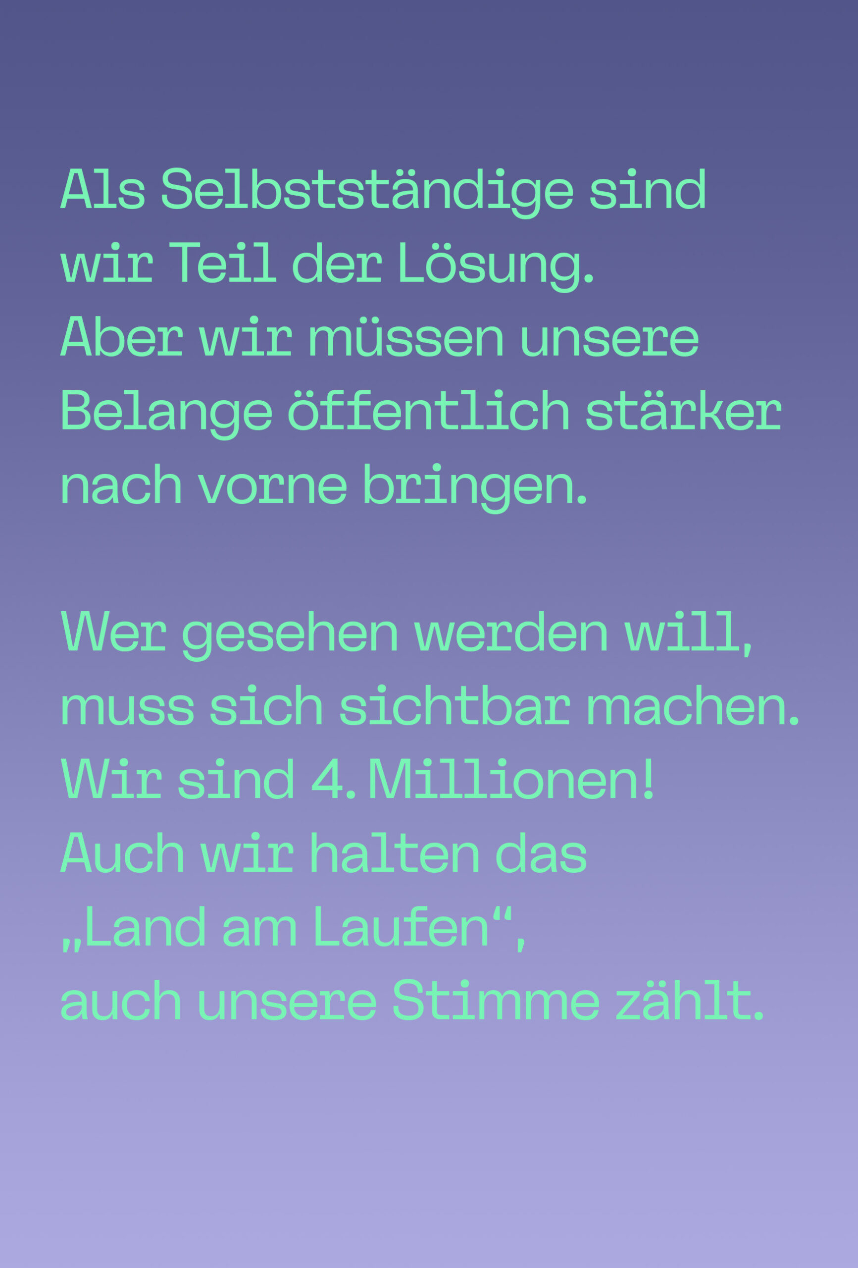 Selbstständige müssen sich sichtbar machen und der Politik und Gesellschaft zeigen, was sie an ihnen haben.